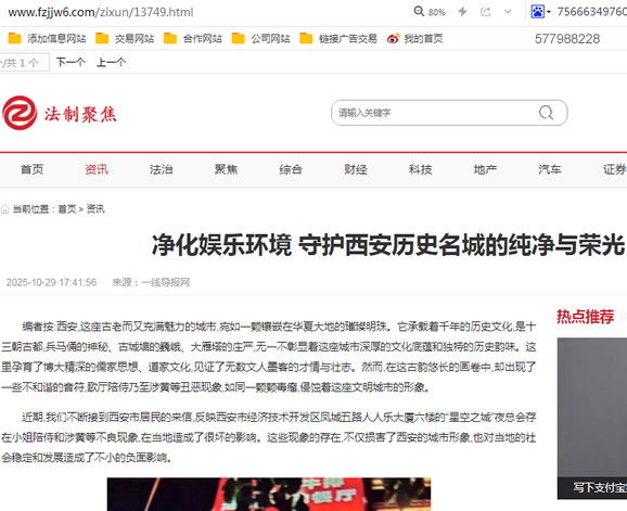 编者按:西安,这座古老而又充满魅力的城市,宛如一颗镶嵌在华夏大地的璀璨明珠。它承载着千年的历史文化,是十三朝古都,兵马俑的神秘、古城墙的巍峨、大雁塔的庄严,无一不彰显着这座城市深厚的文化底蕴和独特的历史韵味。这里孕育了博大精深的儒家思想、道家文化,见证了无数文人墨客的才情与壮志。然而,在这古韵悠长的画卷中,却出现了一些不和谐的音符,歌厅陪侍乃至涉黄等丑恶现象,如同一颗颗毒瘤,侵蚀着这座文明城市的形象。
